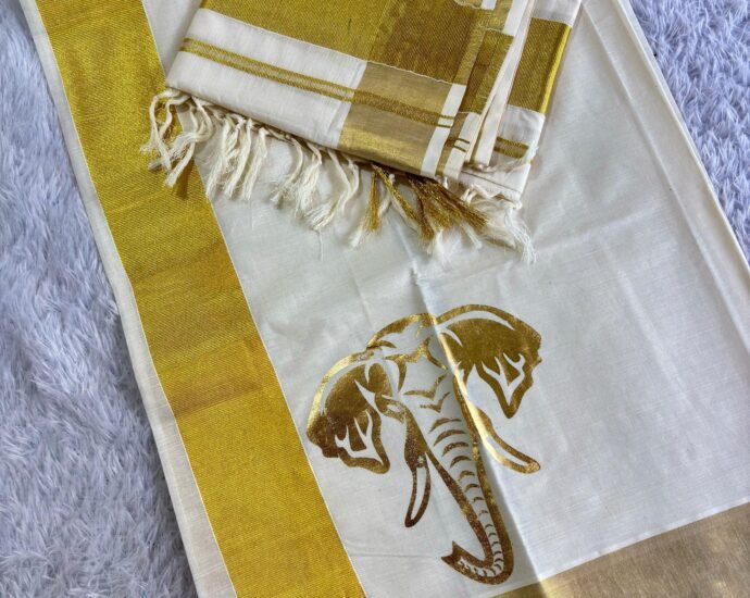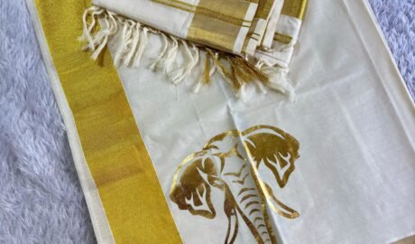 Golden Foil Kasavu Set mundu Uniform available Price Set mundu: 1030+ shipping Length:2.8 * 2