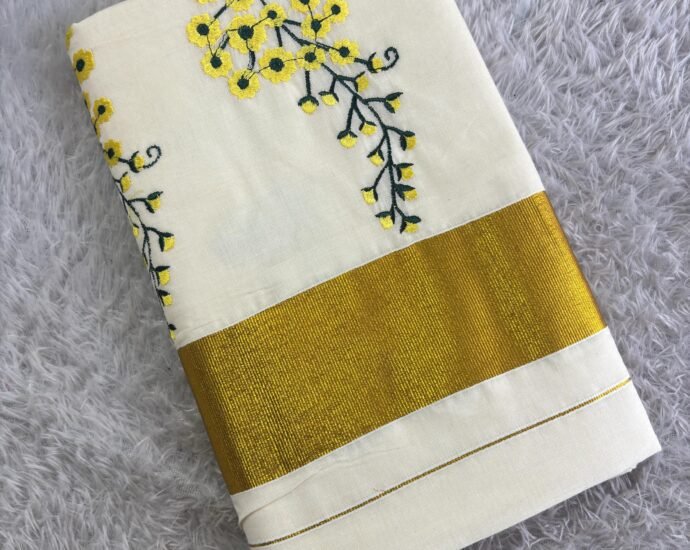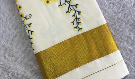 Kannikonna Embro Saree Price Saree : 940+shipping Saree: 6.25 mtrs Quality: premium Material:cotton We use