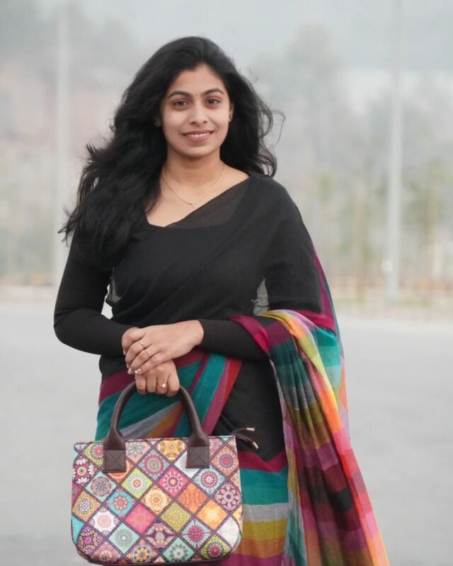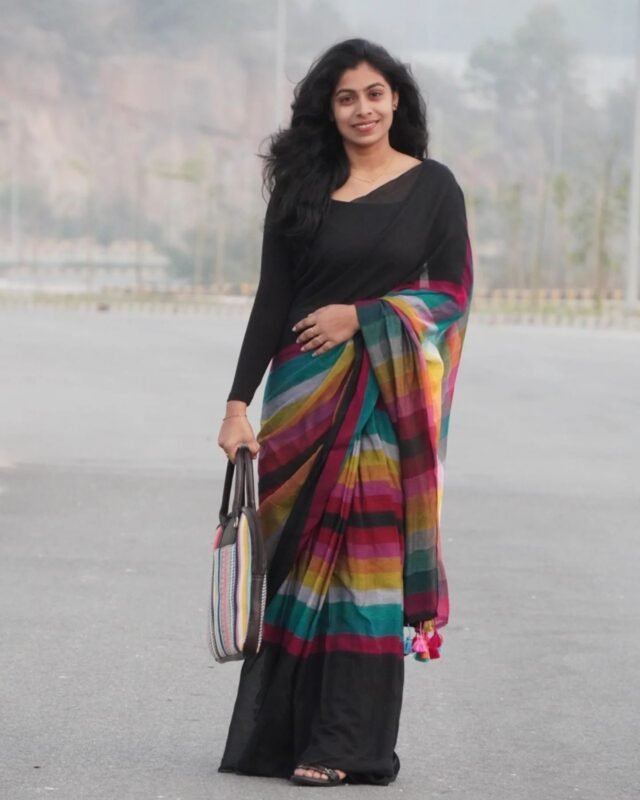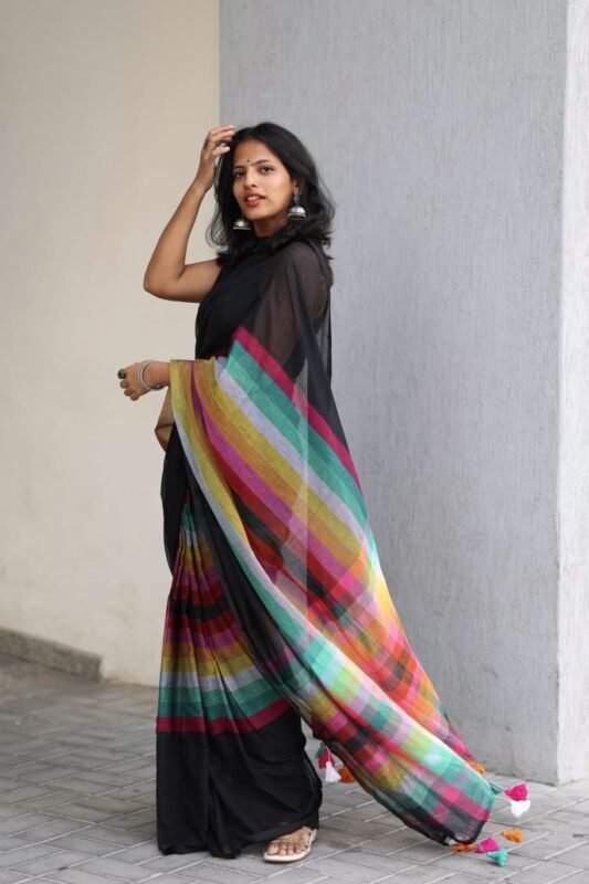 Black rainbow mul mul saree