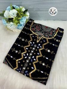 Handwork on yoke portion using cutbeads, sequins and mirrors
