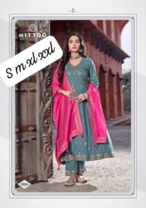 Top n bottom grape colour & pink duppatta, Mehandi green colour top and bottom with yellow duppatta, Teel colur top n bottom also teel, dark pink duppatta