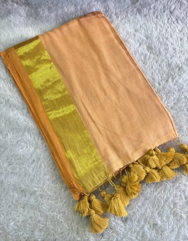 Be the first to review “Peach and Gold border Mul cotton saree”