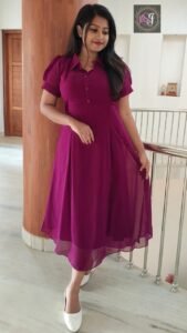 • Faux georgette collar neck semi flair kurti Rs 750 +