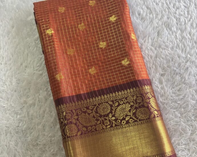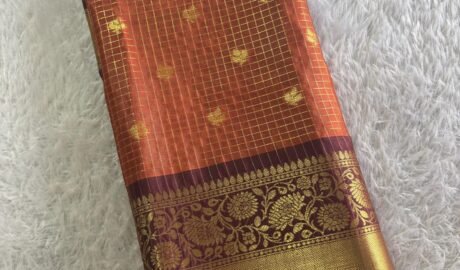 Rust orange Micro Jari checks saree Price saree : Rs.1950+shipping Length:.6.30 mtrs Quality: Premium QUALITY